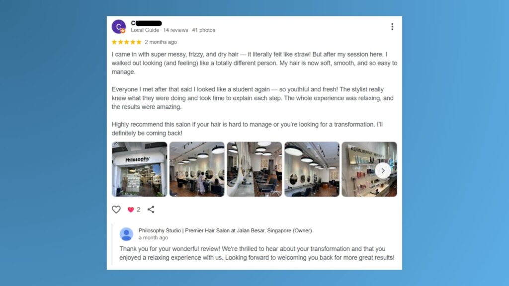 Reviewers on platforms like ClassPass mention their hair feeling lighter and easier to manage after the treatments. Other clients point out the clean and consistent service they receive, no matter which outlet they visit.