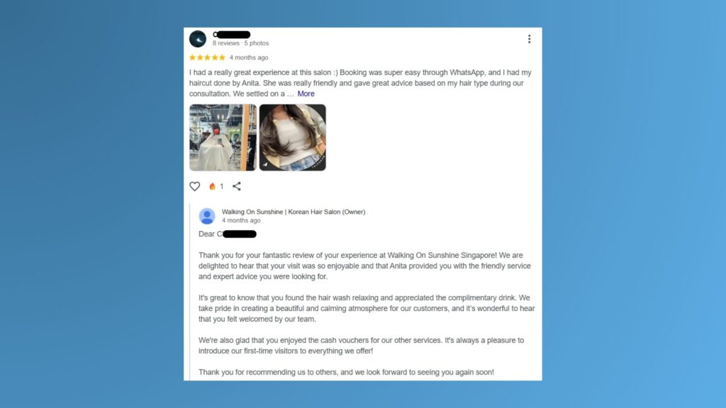 Clients describe the experience as truly relaxing and restorative, noting how refreshed their scalp feels after a head spa session. Reviewers on platforms regularly mention that the service leaves them with hair that feels lighter and noticeably healthier.